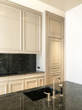 La réflexion sur l'appartement, qui a été complètement réaménagé sans pour cela perdre le charme de l'ancien, est allée jusqu'à la définition du design de toutes les pièces de mobilier.