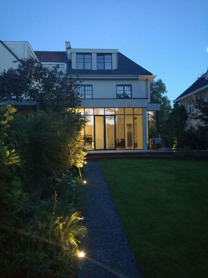 La Commune d’Uccle est composée principalement par un habitat individuel dispersé ou avec une mitoyenneté. Pour ce projet nous avons abordé une maison avec une mitoyenneté. Cela a ajouté l'enjeu urbain (dialoguer avec la maison voisine) à la réflexion sur le projet de reconstruction.